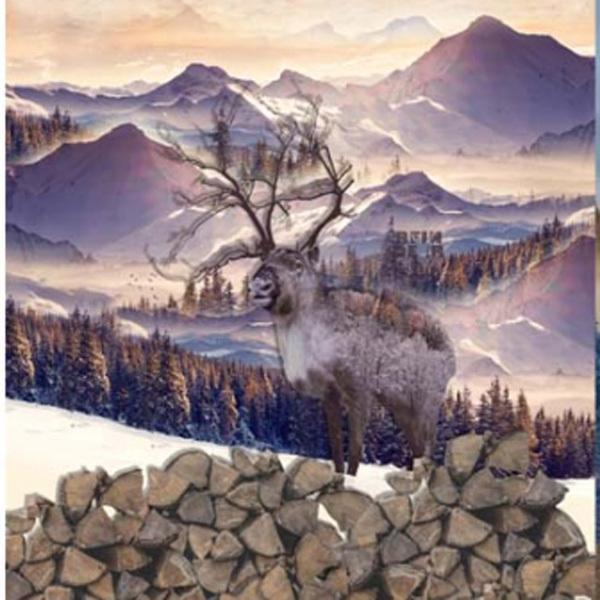 Joustocollegeraportti Poro ja Ylämaan lehmä n.75cm x 150cm